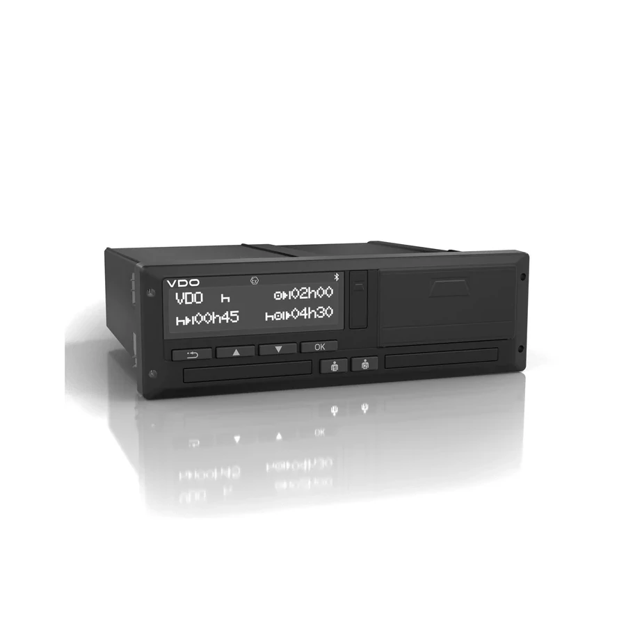 Digitális tachográf, amely 12–24 V-os járművekhez készült, és ADR Z2 besorolással rendelkezik. Ez a verzió nem tartalmaz CAN-ellenállást, és 1‑DIN méretű beépítést tesz lehetővé.